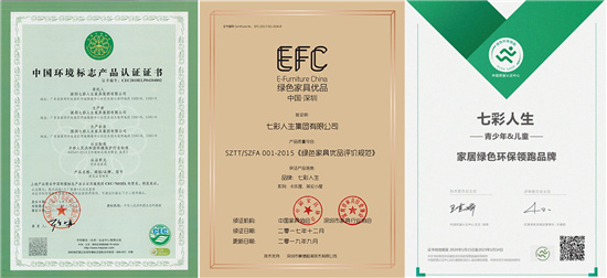 不僅如此,據(jù)了解,2015年,七彩人生就獲得國家家具標(biāo)準(zhǔn)化技術(shù)委員會頒發(fā)的“十環(huán)認(rèn)證”,成為中國環(huán)境保護部認(rèn)證的中國環(huán)境標(biāo)志認(rèn)證產(chǎn)品;